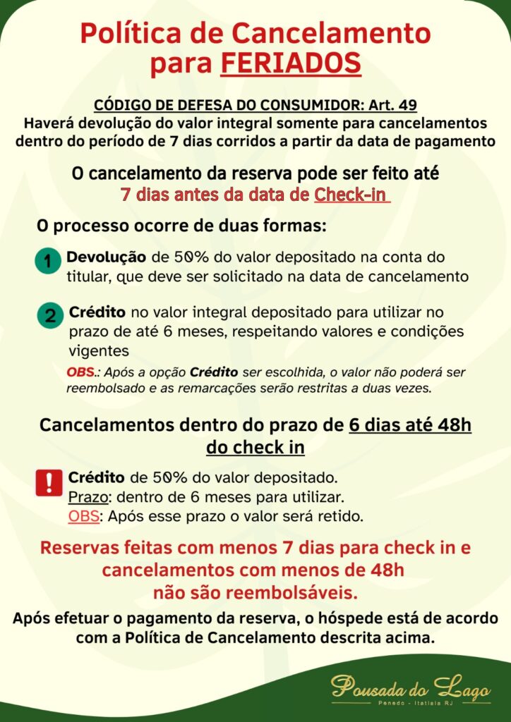 Ao efetuar o depósito bancário o hóspede está de acordo com a Política de Cancelamento descrita.